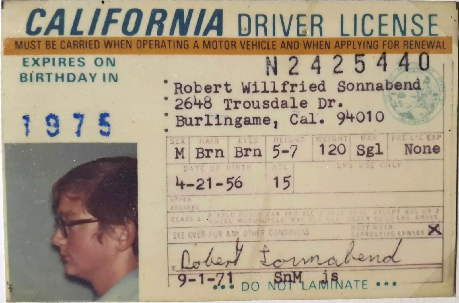 Damals schon habe ich mich unbewusst für 'Motor hinten' und luftgekühlt entschieden. Das Foto entstand vor unserem gemieteten Haus in Burlingame, California. Die genaue Adresse: 2648 Trousdale Drive.