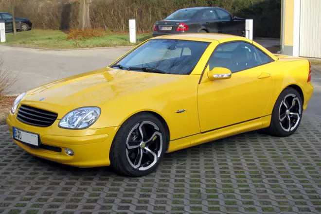 Als ich den PORSCHE WTL gekauft habe, dachte ich, zwei PORSCHE ist ja ein wenig viel. Also den PORSCHE 964 verkauft und einen Mercedes SLK 200 als Zweitwagen gekauft. Ich finde die alten SLK einfach klasse Autos. Auch hier wird mein Hang zu "Farbe" wieder ziemlich deutlich.