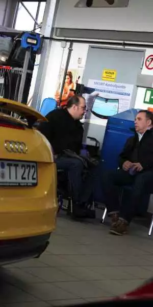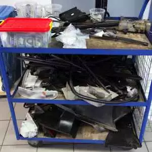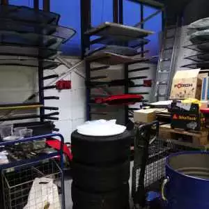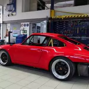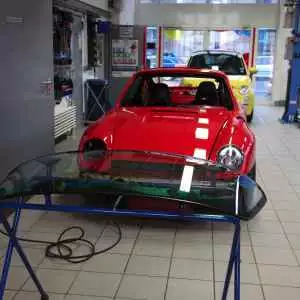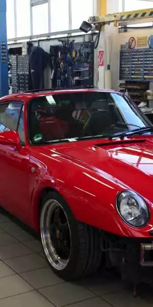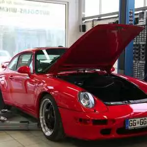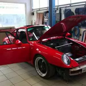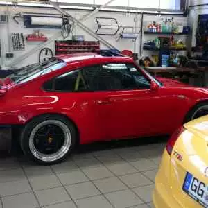 Seit heute (01.02.13) steht der 993 wie­der beim Ber­nie in der Werk­statt. Die Front­schei­be ist wie­der drin und di­ver­se Klein­tei­le wie z. B. die Tür­grif­fe, Schein­wer­fer, etc. sind auch schon dran. Ich habe die Teile aber noch nicht rich­tig fest ge­zo­gen, der Lack kann noch über das Wo­chen­en­de ein wenig aus­här­ten. Mal ge­spannt wie lange es dau­ert, bis alles wie­der dran ist. Ein­zig die Stoß­stan­gen sind noch bis Frei­tag beim La­ckie­rer.